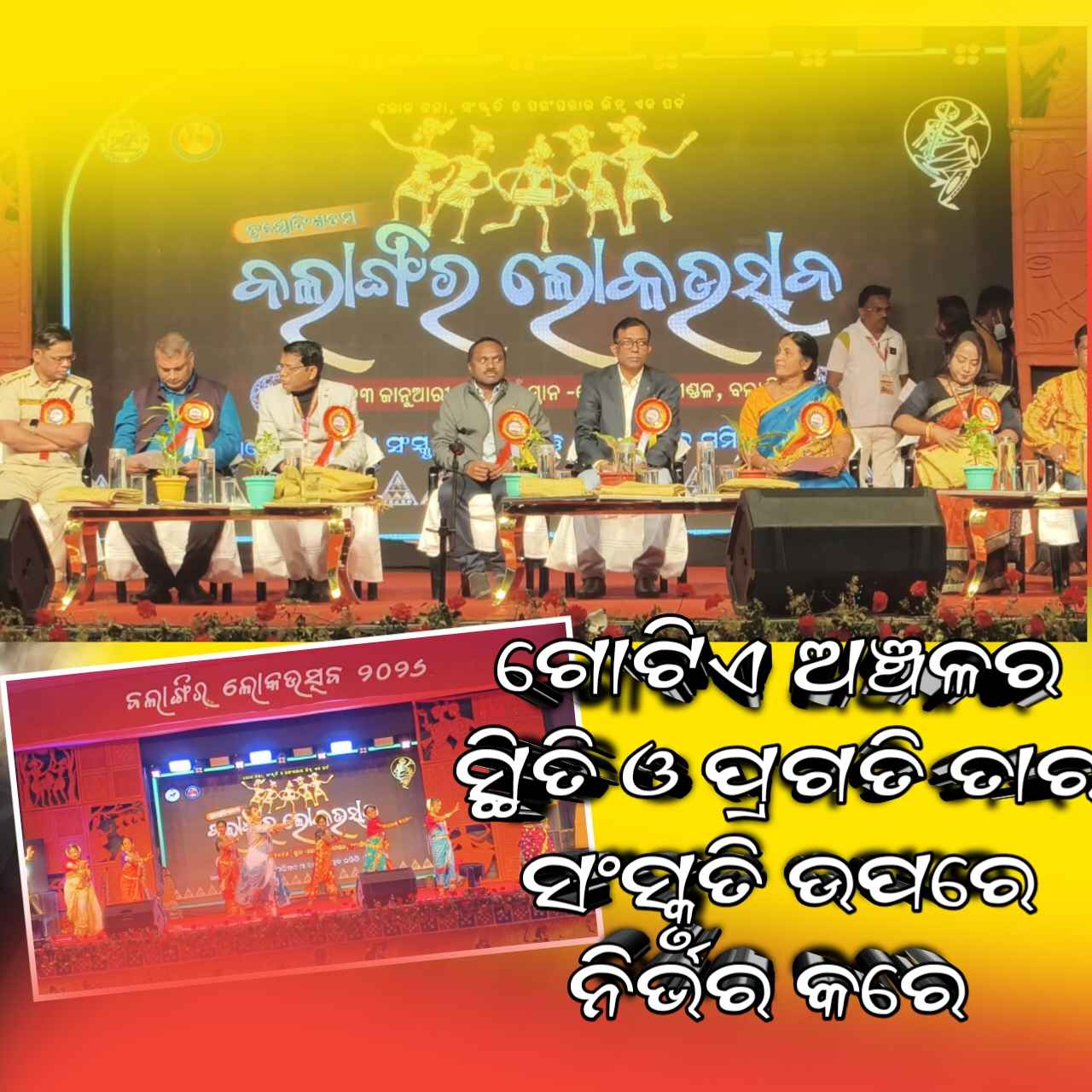 ତ୍ରୟୋବିଂଶତମ ବଲାଙ୍ଗିର ଲୋକ ଉତ୍ସବର ତୃତୀୟ ଦିବସର କାର୍ଯ୍ୟକ୍ରମ ଅତିରିକ୍ତ ଜିଲ୍ଲାପାଳ, ବଲାଙ୍ଗିର, ଡକ୍ଟର ବିଜୟାନନ୍ଦ ସେଠୀ ଙ୍କ ସଭାପତିତ୍ଵରେ ଅନୁଷ୍ଠିତ ହୋଇଥିଲା l ଗୋଟିଏ ଅଂଚଳର ସ୍ଥିତି ଓ ପ୍ରଗତି ସେ ଅଞ୍ଚଳର ସଂସ୍କୃତି ଉପରେ ନିର୍ଭର କରେ ବୋଲି ଅତିରିକ୍ତ ଜିଲ୍ଲାପାଳ ଶ୍ରୀ ସେଠୀ ମତ ଦେଇଥିଲେ l ଏହି କାର୍ଯ୍ୟକ୍ରମରେ ସମ୍ମାନିତ ଅତିଥି ଭାବେ ସମ୍ପାଦକ, ଜିଲ୍ଲା ଆଇନ ସେବା ପ୍ରାଧିକରଣ, ବଲାଙ୍ଗିର, ପବିତ୍ରାନନ୍ଦ ପ୍ରଧାନ, ରେଜିଷ୍ଟାର, ସିଭିଲ କୋର୍ଟ, ବଲାଙ୍ଗିର, ସୁଦୀପ ମିଶ୍ର, ଅତିରିକ୍ତ ଆରକ୍ଷୀ ଅଧିକ୍ଷକ, ଗୁଣନିଧି ମଲ୍ଲିକ, କୁଳସଚିବ, ରାଜେନ୍ଦ୍ର ବିଶ୍ବବିଦ୍ୟାଳୟ, ବଲାଙ୍ଗିର, ହରପ୍ରସାଦ ଭୋଇ, ମୁଖ୍ୟ ଉନ୍ନୟନ ଅଧିକାରୀ ତଥା ନିର୍ବାହୀ ଅଧିକାରୀ, ଜିଲ୍ଲା ପରିଷଦ, ତରଣି ସୁନା, ଜିଲ୍ଲା ସମାଜ ମଙ୍ଗଳ ଅଧିକାରୀ ସୁଷମା ମହାପାତ୍ର ଯୋଗ ଦେଇ ନିଜ ଅଭିଭାଷଣରେ ଆମ ଐତିହ ଏବଂ ଏକତାର ପ୍ରତୀକ ଏହି ଲୋକ ଉତ୍ସବ ମଞ୍ଚ କଳାକାର ଏବଂ କଳାକୁ ଭଲ ପାଉଥିବା ବ୍ୟକ୍ତି ବିଶେଷଙ୍କର ବୋଲି କହିଥିଲେ। ଏହି ଲୋକ ଉତ୍ସବ ଆମ ସମସ୍ତଙ୍କର, ତେଣୁ ପ୍ରତି ବର୍ଷ ଏହା କିପରି ଆହୁରି ସୁନ୍ଦର ଭାବେ ଆୟୋଜିତ ହୋଇପାରିବ ସେଥିପ୍ରତି ଆମେ ସମସ୍ତେ ମିଳିତ ଭାବେ କାର୍ଯ୍ୟ କରିବା ବୋଲି ମଞ୍ଚାସୀନ ଅତିଥିବୃନ୍ଦ ମତ ଦେଇଥିଲେ।