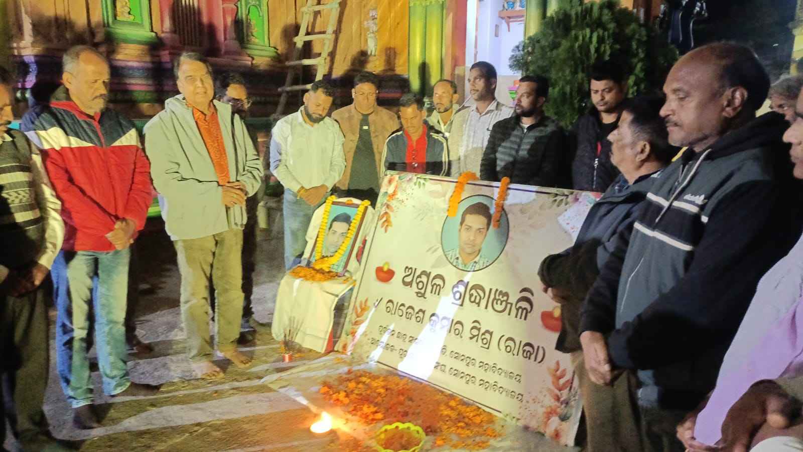 ସୋନପୁରର ଯୁବ କଂଗ୍ରେସ ନେତା ରାଜେଶ ମିଶ୍ର(ରାଜା)ଙ୍କ ବିୟୋଗରେ ଆଜି ସୋନପୁର କଲେଜ ଆଲୁମିନୀ ସଂଘ ପକ୍ଷରୁ ସ୍ଥାନୀୟ ପଞ୍ଚରଥ ମନ୍ଦିର ଠାରେ ଏକ ଶ୍ରଦ୍ଧାଞ୍ଜଳୀ ସଭା ଅୟୋଜନ କରା ଯାଇଥିଲା । ସଂଘର ଉପଦେଷ୍ଟା ଡ଼. ପ୍ରଫୁଲ୍ଲ ରଥ ଙ୍କ ଅଧ୍ୟକ୍ଷତା ରେ ଅନୁଷ୍ଟିତ ଏହି ସଭାରେ କଲେଜ୍ ର ବହୁ ପୁରାତନ ଛାତ୍ର ଓ ସହରର ବିଶିଷ୍ଟ ବ୍ୟକ୍ତି ଯୋଗ ଦେଇ ସ୍ଵର୍ଗତ ରାଜା ମିଶ୍ରଙ୍କ ଫଟୋ ଚିତ୍ରରେ ଧୂପଦୀପ ପୁଷ୍ପ ପ୍ରଦାନ ପୂର୍ବକ ଶ୍ରଦ୍ଧାଞ୍ଜଳୀ ଅର୍ପଣ କରିଥିଲେ । ସଭା ପୁର୍ବରୁ ପ୍ରଥମେ ସ୍ୱର୍ଗୀୟ ରାଜା ଙ୍କ ଅମର ଆତ୍ମା ଶାନ୍ତି ସଦଗତି ଲାଗି ନୀରବ ପ୍ରାର୍ଥନା କରାଯାଇଥିଲା । ସଂଘ ସଭାପତି ପ୍ରଫୁଲ୍ଲ ରଥ ଓ ସମ୍ପାଦକ ଭରତ ଭୂଷଣ ଦାଶ ଙ୍କ ଅଧ୍ୟକ୍ଷତା ରେ ଆହୁତ ଶ୍ରଦ୍ଧାଞ୍ଜଳୀ ସଭାରେ ଗତିକୃଷ୍ଣ ମିଶ୍ର , ଶ୍ୟମାଓଁ ପ୍ରସାଦ ମିଶ୍ର, ବିନୋଦ ପାତ୍ର, ଗୁପ୍ତ ପ୍ରସାଦ ମିଶ୍ର,ସୁଧୀର ପଣ୍ଡା, ଦୀପକ କୁମାର ମହାପାତ୍ର, ଶାଶ୍ଵତ କୁମାର ମିଶ୍ର, ବିଶ୍ବରଂଜନ ପୁଝାରୀ, ପ୍ଲାବନ ମହାପାତ୍ର, ବିଶ୍ୱବିର ମିଶ୍ର, ସରୋଜ ପ୍ରଧାନ, ନିଶାନ୍ତ ମହାନ୍ତି, ରାମଶଙ୍କର ଭୋଇ, ଜ୍ୟୋତିର୍ମୟ ମିଶ୍ର, ରଞ୍ଜିତ ଦାଶ, ସୁଦାମ ଚରଣ ମିଶ୍ର, ଶ୍ରୀବତ୍ସ ମଲ୍ଲିକ, ଶାନ୍ତନୁ ଆଚାର୍ଯ୍ୟ, ଦେବ ରଞ୍ଜନ ମିଶ୍ର, ପ୍ରସନ୍ନ କର୍ଣ୍ଣ, ବିନୋଦ ମେହେର, ନରେନ୍ଦ୍ର ଖେତି,କୃଷ୍ଣଚନ୍ଦ୍ର ରାଓତ, ରମଜିଲାଲ ନେଗି, ପଠାଣ ପଣ୍ଡା, ମୁରଲୀ ହୋତା, ରୁଦ୍ରାକ୍ଷ ସାହୁ ଆଲୁମିନା ଗ୍ରୁପ୍ ର ସମସ୍ତ ବରିଷ୍ଠ ଓ କନିଷ୍ଠ ସଦସ୍ୟ ଉପସ୍ଥିତ ଥିଲେ।