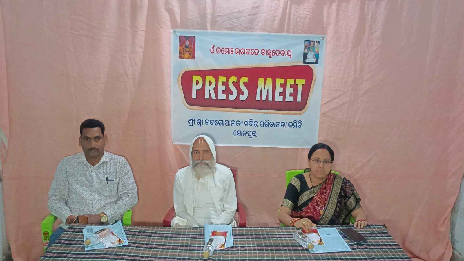 ସୋନପୁର ଶ୍ରୀ ଗୋପାଳ ଜୀ ମନ୍ଦିର ଠାରେ ମନ୍ଦିର କମିଟି ର ମୁଖ୍ୟ ତଥା ପୁରୀ ମହନ୍ତ ଶ୍ରୀ ବଂଶୀ ଧର ଦାସ ମହାରାଜ ଙ୍କ ଅଧ୍ୟକ୍ଷତା ରେ ଏକ ସାମ୍ବାଦିକ ସମ୍ମିଳନୀ ଅନୁଷ୍ଟିତ ହୋଇଥିଲା l ଏଥିରେ ସୋନପୁର ଉପ ଜିଲ୍ଲାପାଳ ଡ଼ ସୌମ୍ୟ ରୂପା ରଥ ଓ କମିଟି ସଦସ୍ୟ ଦୀପକ ମହାପାତ୍ର ମଞ୍ଚା ସିନ ଥିଲେ l ଏହା ଏକ ଦୀର୍ଘ ବର୍ଷ ର ତପସ୍ୟା ଥିଲା l ଜିଲ୍ଲା ପ୍ରଶାସନ ର ପ୍ରଶାସକ ଓ ବିଚାରପତି ମାନଙ୍କ ର ହ୍ରୁଦୟ ରେ ବସିଲେ ଶ୍ରୀ ଗୋପାଳ ଜୀ ତେଣୁ ଏ ତପସ୍ୟା ର ଆଜି ସୁଫଳ ମିଳିଛି l ପ୍ରଭୁ ହେଉଛନ୍ତି ସୋନପୁର ର ଜୀବନ ପ୍ରାଣ l ଆସନ୍ତା କାଲି ୨୫ ତାରିଖ ଅପରାହ୍ନ ୧ ଟା ୪୦ ରେ ଶ୍ରୀ ଗୋପାଳ ଜୀ ମହାପ୍ରଭୁ ଜିଲ୍ଲା କୋଷlଗର ରୁ ଭକ୍ତ ଶ୍ରଦ୍ଧାଳୁ ଙ୍କ ଗହଣରେ ଏକ ଭବ୍ୟ ବିଶାଳ ଶୋଭଯାତ୍ରାରେ ଏହି ଐତିହାସିକ ପୀଠ କୁ ପହଞ୍ଚିବେ ବୋଲି ସାମ୍ୱାଦିକ ଙ୍କୁ ସୂଚନା ଦେଇଛନ୍ତି ମହନ୍ତ ମହାରାଜ l ପୋଲିସ ପକ୍ଷରୁ ସୁରକ୍ଷା ବ୍ୟବସ୍ଥା କଡାକଡି କରାଯାଇଛି ବୋଲି ଉପ ଜିଲ୍ଲାପାଳ ଡ଼ ରଥ ପ୍ରକାଶ କରିଥିଲେ l ଦୀର୍ଘ ୪୨ ବର୍ଷ ପରେ ମନ୍ଦିର ପ୍ରତ୍ୟାବର୍ତ୍ତନ ହେବେ ଓ ଭବ୍ୟ ସମାରୋହ ରେ ପୁନଃ ପ୍ରତିଷ୍ଠା ଉତ୍ସବ ଲାଗି ମନ୍ଦିର ରେ ବିଜେ ହେବେ ଶ୍ରୀଶ୍ରୀ ବଡ ଗୋପାଳଜୀ ମହାପ୍ରଭୁ l