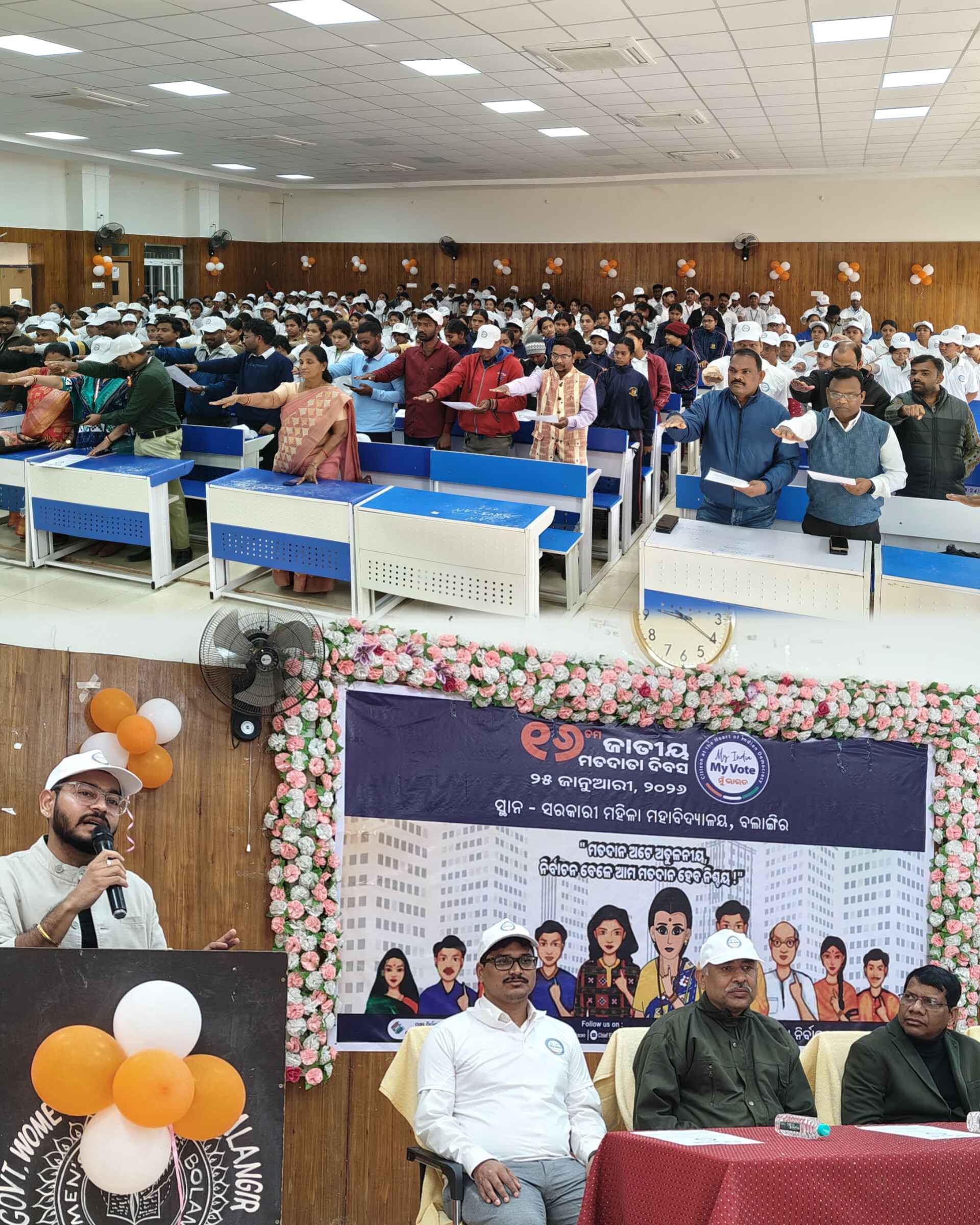 ବଲାଙ୍ଗିର: ବଲାଙ୍ଗିର ଜିଲ୍ଲା ପ୍ରଶାସନ ଆନୁକୂଲ୍ୟରେ ଆଜି ୧୬ ତମ ଜାତୀୟ ମତଦାତା ଦିବସ ପାଳିତ ହୋଇଯାଇଛି I ଏହି ପରିପ୍ରେକ୍ଷୀରେ ସକାଳ ଘ. ୮ ମି ସମୟରେ କୋଶଳ କଳା ମଣ୍ଡଳ ପରିସରରୁ ଏକ ସଚେତନତା ରାଲିର ଆୟୋଜନ କରାଯାଇଥିଲା I ଅତିରିକ୍ତ ଜିଲ୍ଲାପାଳ(ସାଧାରଣ) ଡ଼ ବିଜୟାନନ୍ଦ ସେଠୀ ପତାକା ଦେଖାଇ ଆନୁଷ୍ଠାନିକ ଭାବେ ଏହି ରାଲିକୁ ଶୁଭାରମ୍ଭ କରିଥିଲେ । ବଲାଙ୍ଗିର ଉପଜିଲ୍ଲାପାଳ ଆଲୋକ କୁମାର ପଟେଲ, ନିର୍ବାହୀ ଅଧିକାରୀ, ପୌର ପରିଷଦ ସନ୍ତୋଷ ବେହେରା, ସହକାରୀ ଜିଲ୍ଲାପାଳ ଦେବସ୍ମିତ୍ ମହାପାତ୍ର, ଜିଲ୍ଲା ସୂଚନା ଓ ଲୋକ ସମ୍ପର୍କ ଅଧିକାରୀ ରାଜେନ୍ଦ୍ର ମାଝୀ ଏବଂ ବିଭିନ୍ନ ମହାବିଦ୍ୟାଳୟର ଛାତ୍ରଛାତ୍ରୀ, ଏନ.ସି.ସି, ରେଡ କ୍ରସ, ସିଭିଲିଆନ ଦଳର ଛାତ୍ରୀ ଏବଂ ଜନସାଧାରଣ ଏହି ରାଲିରେ ଯୋଗ ଦେଇଥିଲେ I ଉକ୍ତ ରାଲି ମହିଳା ମହାବିଦ୍ୟାଳୟଠାରେ ସମାପ୍ତ ହୋଇଥିଲା I ଏଠାରେ ଉପସ୍ଥିତ ଅତିଥିମାନେ ଛାତ୍ରଛାତ୍ରୀଙ୍କ ସହିତ ଜାତୀୟ ମତଦାତା ଦିବସ ପାଳନର ଆଭିମୁଖ୍ୟ ଓ ଭୋଟଦାନ ସମ୍ପର୍କରେ ସବିଶେଷ ଆଲୋଚନା କରିଥିଲେ । ଏହାସହ ଏକ ସଂକ୍ଷିପ୍ତ ପ୍ରଶ୍ନୋତ୍ତର ସ୍ପର୍ଦ୍ଧା ଦ୍ୱାରା ମତଦାନ ସମ୍ପର୍କିତ ଦାୟିତ୍ୱ ଓ କର୍ତ୍ତବ୍ୟ ସମ୍ପର୍କରେ ସେମାନଙ୍କୁ ସଚେତନ କରାଇବା ସହ ମତଦାନ କରିବାକୁ ଶପଥ ପାଠ କରାଇଥିଲେ I ଉକ୍ତ ଦିବସ ଉପଲକ୍ଷେ ମହିଳା ମହାବିଦ୍ୟାଳୟଠାରେ ଆୟୋଜିତ ସଭାରେ ମୁଖ୍ୟ ଅତିଥି ଭାବେ ଯୋଗଦେଇ ଜିଲ୍ଲାପାଳ ଗୌରୱ ଶିୱାଜି ଇସଲୱାର କହିଥିଲେ, ଗଣତନ୍ତ୍ରର ମୁଖ୍ୟ ଉପାଦାନ ଭାବେ ନାଗରିକର