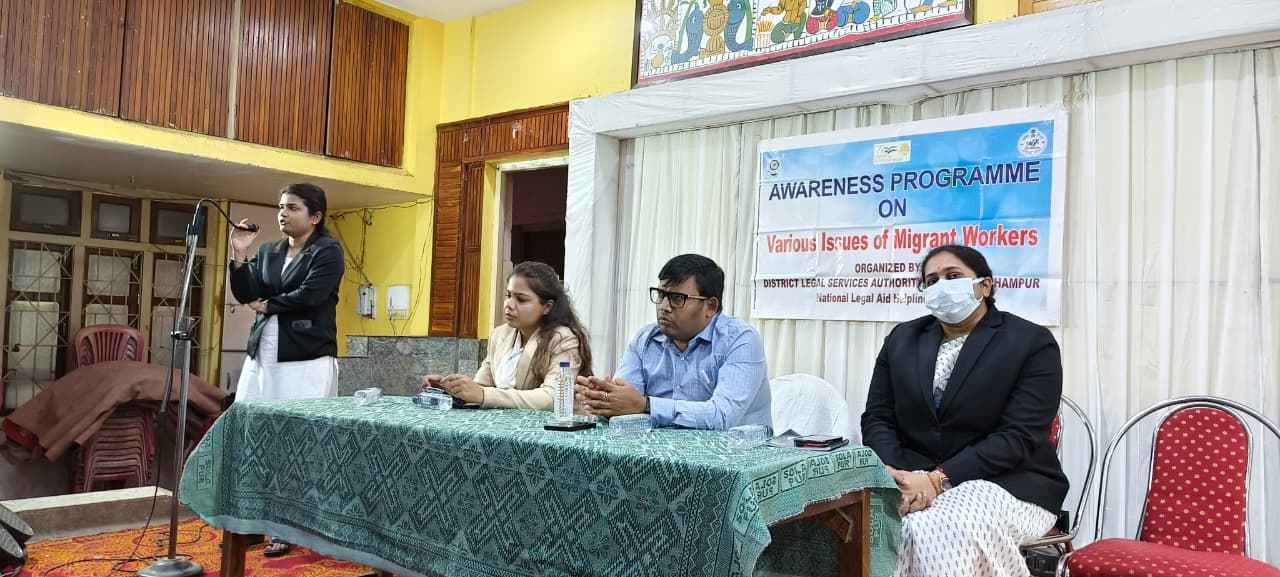 ଗଞ୍ଜାମ(କୈଳାଶ ଚନ୍ଦ୍ର ଚୌଧୁରୀ): ଗଞ୍ଜାମ ଜିଲ୍ଲା ଓ ଦୌରା ଜଜ ତଥା ଜିଲ୍ଲା ଆଇନ ସେବା ପ୍ରାଧିକରଣ ଅଧ୍ୟକ୍ଷ ଶ୍ରୀ ଅଶାନ୍ତ କୁମାର ଦାସଙ୍କ ନିର୍ଦ୍ଦେଶ କ୍ରମେ ଜିଲ୍ଲା ଆଇନ ସେବା ପ୍ରାଧିକରଣ ସଚିବ ଶ୍ରୀ ବ୍ୟୋମକେଶ ନାୟକଙ୍କ ପୌରହିତ୍ୟ ରେ ସୋମବାର ବ୍ରହ୍ମପୁର ହିଲପାଟଣା ସ୍ଥିତ ସହୀଦ ଲକ୍ଷ୍ମଣ ନାୟକ କମ୍ୟୁନିଟି ହଲରେ ପ୍ରବାସୀ ଶ୍ରମିକଙ୍କ ବିଭିନ୍ନ ସମସ୍ୟା ଉପରେ ଏକ ସଚେତନତା କାର୍ଯ୍ୟକ୍ରମ ଅନୁଷ୍ଠିତ ହୋଇଥିଲା l ଏହି ପରିପ୍ରେକ୍ଷୀରେ ଜେଏମଏଫସି (ଏଲ ଆର ଏଣ୍ଡ ଏଲଟିଭି) ସୁଶ୍ରୀ ଅନ୍ଵେଷା ଦାସ, ସିଭିଲ ଜଜ ପ୍ରୋବେସନ ସୁଶ୍ରୀ ସ୍ମିତା ମହାପାତ୍ର,ସିଭିଲ ଜଜ ପ୍ରୋବେସନ ସୁଶ୍ରୀ ଶୁଭଲକ୍ଷ୍ମୀ ଦାସ,ଜିଲ୍ଲା ଶ୍ରମ ଅଧିକାରିଣୀ ଶୁଭଲକ୍ଷ୍ମୀ ବେହେରାଙ୍କ ସମେତ ବହୁ ଶ୍ରମିକ ଉପସ୍ଥିତ ରହିଥିଲେ l ତେଵେ କାର୍ଯ୍ୟକ୍ରମଟି ଜିଲ୍ଲା ଆଇନ ସେବା ପ୍ରାଧିକରଣ ସଚିବଙ୍କ ଦ୍ୱାରା ସଫଳ ରୂପେ ପରିଚାଳିତ ହୋଇଛି l
