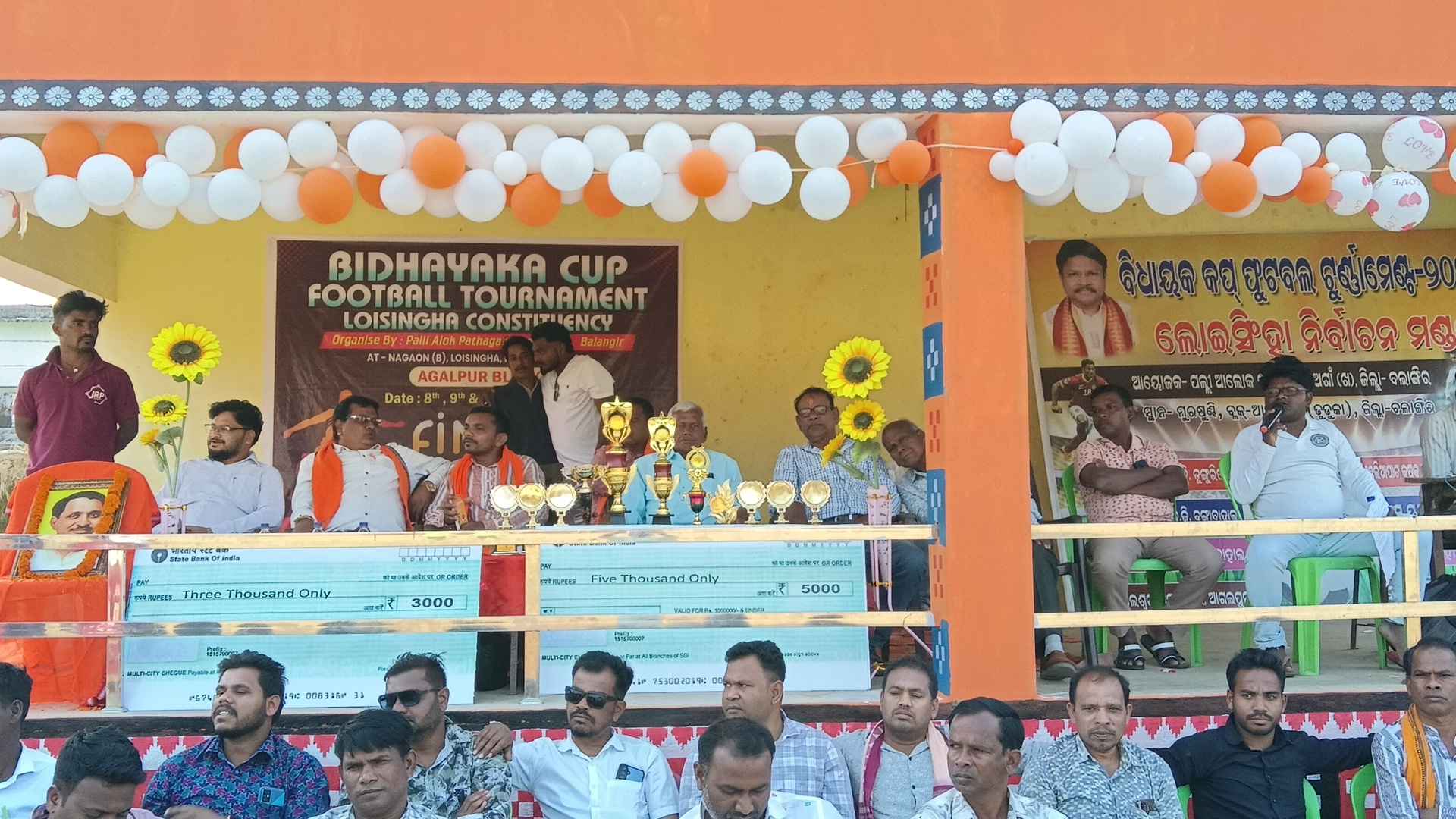 ଲୋଇସିଂହା, (ବିନୋଦ ଦୀପ) ବଲାଙ୍ଗୀର ଜିଲ୍ଲା ଆଗଲପୁର ବ୍ଲକ ମୁରଶୁଣ୍ଡ ମିନିଷ୍ଟାଡିୟମ ରେ ପଲ୍ଲୀ ଆଲୋକ ପାଠାଗାର ଆନୁକୂଲ୍ୟରେ ଚାଲିଥିବା ବିଧାୟକ କପ ଫୁଟବଲ ଟୁର୍ନାମେଣ୍ଟ ଉଦଯାପିତ ହୋଇଛି | ବଡ଼ଟୀକା ଓ ଆଗଲପୁର ଦଳ ମଧ୍ୟ୍ୟରେ ପ୍ରଥମ ସେମି ଫାଇନାଲ ଖେଳ ଅନୁଷ୍ଠିତ ହୋଇଥିଲା ଓ ଏଥିରେ ବଡ଼ଟୀକା ଦଳ ୨-୦ ଗୋଲ ରେ ବିଜୟୀ ହୋଇ ଫାଇନାଲ କୁ ପ୍ରବେଶ କରିଥିଲା | ଏହାସହ ନଅଗାଁ ଓ ବକଟି ଦଳ ମଧ୍ୟ୍ୟରେ ସଂଘର୍ଷପୁର୍ଣ ଦ୍ଵିତୀୟ ସେମି ଫାଇନାଲ ଖେଳ ଅନୁଷ୍ଠିତ ହୋଇଥିଲା ନିର୍ଦ୍ଧାରିତ ସମୟ ମଧ୍ୟ୍ୟରେ ଖେଳ ଅମୀମାଂଶିତ ରହିବାରୁ ଟ୍ରାଇବ୍ରେକର ଜରିଆରେ ନଅଗାଁ ଦଳ ବିଜୟୀ ହୋଇଥିଲା |