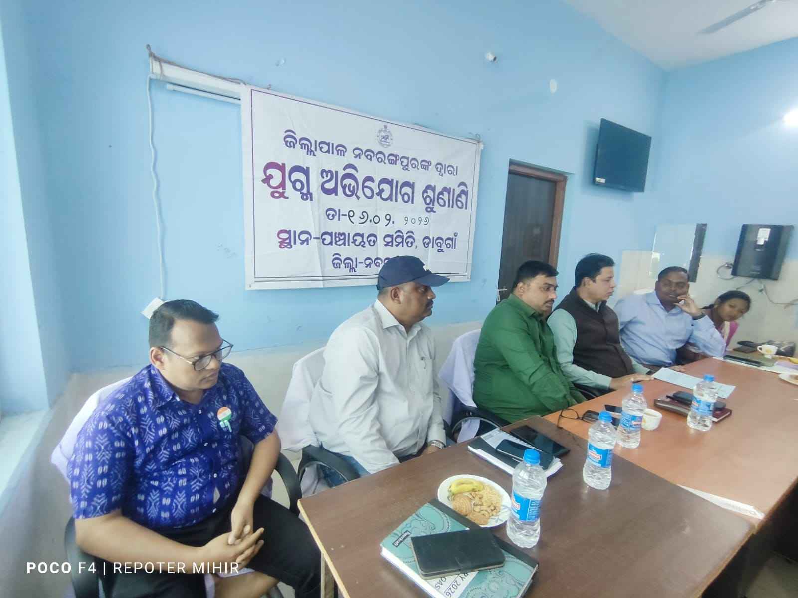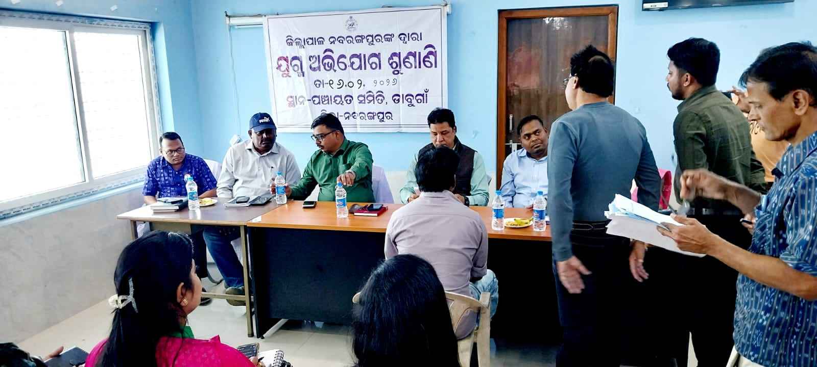 ନବରଙ୍ଗପୁର ଜିଲା ଡାବୁଗାଁ ବ୍ଲକ କାର୍ଯ୍ୟ|ଳୟ ପରିସରରେ ଥିବା ମିସନଶକ୍ତି ସଭାଗୃହରେ ବ୍ଲକ ସ୍ତରୀୟ ଯୁଗ୍ମ ଅଭିଯୋଗ ଶୁଣାଣି କାର୍ଯ୍ୟକ୍ରମ ସୋମବାର ଅନୁଷ୍ଠିତ ହୋଇଯାଇଛି | ଏଥିରେ ନବରଙ୍ଗପୁର ଜିଲାପାଳ ମହେଶ୍ଵର ସ୍ଵାଇଁ ଙ୍କ ଦ୍ଵାରା ୩୭ ଟି ଅଭିଯୋଗ ର ଶୁଣାଣି କରି ତାର ସମାଧାନ ନିମନ୍ତେ ଜିଲାର ଯେଉଁ ବିଭାଗର ଅଭିଯୋଗ ସେହି ବିଭାଗର ଅଧିକାରୀ ମାନଙ୍କୁ ସମାଧାନ କରିବା ପାଇଁ ନିର୍ଦ୍ଦେଶ ଦେଇଥିଲେ । ୩୭ ଟି ଅଭିଯୋଗ ମଧ୍ୟରୁ ୧୫ ଟି ଅଭିଯୋଗ ବ୍ୟକ୍ତିଗତ, ୨୨ ଟି ଅଭିଯୋଗ ଗୋଷ୍ଠୀଗତ ହୋଇ ଥିବା ବେଳେ ଡାବୁଗାଁ ବ୍ଲକ ସଦରମହକୁମା ଠାରେ ବ୍ରାହ୍ମଣ ସମାଜର ଏକ ବୈଠକ ଗୃହ ନିର୍ମାଣ ନିମନ୍ତେ ଜାଗା ପ୍ରଦାନ, ମେଦନା ଗ୍ରାମରେ ଖେଳ ପଡିଆ ନିର୍ମାଣ, ଜବାଗୁଡା ପଞ୍ଚାୟତର ଫୁଲଭଟ୍ଟା ଗ୍ରାମର ବିଦ୍ୟାଳୟର ଶିକ୍ଷକ ବଦଳି କରିବା, ଡ଼ଙ୍ଗରିଗୁଡା ଗ୍ରାମର ଘରଡିହ ପଟ୍ଟା ପ୍ରଦାନ, ଜୁନାପାଣି ଧାନମଣ୍ଡିରେ ମିଲ ମାଲିକ ଙ୍କ ମନମାନୀ ଓ କୁଇଣ୍ଟାଲ ପିଛା ୧୦ ରୁ ୧୨ କି.ଗ୍ରା. ଧାନ କଟନୀ ଛଟନୀ କରାଯାଉଛି, ଡାବୁଗାଁ ମଶାଣିପଦାରେ ପୋଷାକ ବଦଳ ଗୃହ ନିର୍ମାଣ, ଡାବୁଗାଁ ହାଟପଦା ଗ୍ରାମର କୌଶଲ୍ୟା ଜାନୀ ଙ୍କ ସମ୍ପର୍କୀୟ ଙ୍କ ମୃତ୍ୟୁ ପ୍ରମାଣପତ୍ର ଡାବୁଗାଁ ଗୋଷ୍ଠୀ ସ୍ୱାସ୍ଥ୍ୟ କେନ୍ଦ୍ରରେ ମିଳୁ ନଥିବା, ନନ୍ଦପୁରାରେ ରାସ୍ତା ନିର୍ମାଣ, ବଡଓଲମା ଗ୍ରାମର ଭିନ୍ନକ୍ଷମ ବିଚିତ୍ର ହରିଜନ ଧାନ ମଣ୍ଡି ରେ ଧାନ ବିକ୍ରି କରି ୧୬ ଦିନ ପୁରିଯାଇଥିଲେ ମଧ୍ୟ ବ୍ୟାଙ୍କ ଖାତାରେ ଧାନ ଟଙ୍କା ନଅସିବା, ପାପଡାହାଣ୍ଡି ବ୍ଲକ ଅଧୀନ ବୁଟିଆଗୁଡା ଗ୍ରାମର ଭୂମିହୀନ ଲୋକଙ୍କୁ ଭ୍ମି ଯୋଗାଇଦେବା, ମୁଣ୍ଡୀଗୁଡା ଗ୍ରାମକୁ ରାସ୍ତା ନିର୍ମାଣ କରିବା, ମଇଦଲପୁର ର ଚାଷୀ ମାନଙ୍କୁ ମଣ୍ଡିରେ ଧାନ ବିକ୍ରି କରିବାକୁ ଟୋକନ ନମିଳିବା, ଚନ୍ଦହାଣ୍ଡି ବ୍ଲକର ସନ୍ଦରିଗୁଡା ଗ୍ରାମରେ ଗାଈ ଗୁହାଳ ନିର୍ମାଣ କରିବା ଓ ଝରିଗାଁ ବ୍ଲକ ଅଧୀନ କୋଇଗାଁ ଗ୍ରାମରେ ଭିନ୍ନକ୍ଷମ ବ୍ୟକ୍ତି ଙ୍କ ଭତ୍ତା ରାଶି ବଢାଇବା ଆଦି ଅଭିଯୋଗ ହୋଇଥିଲା |