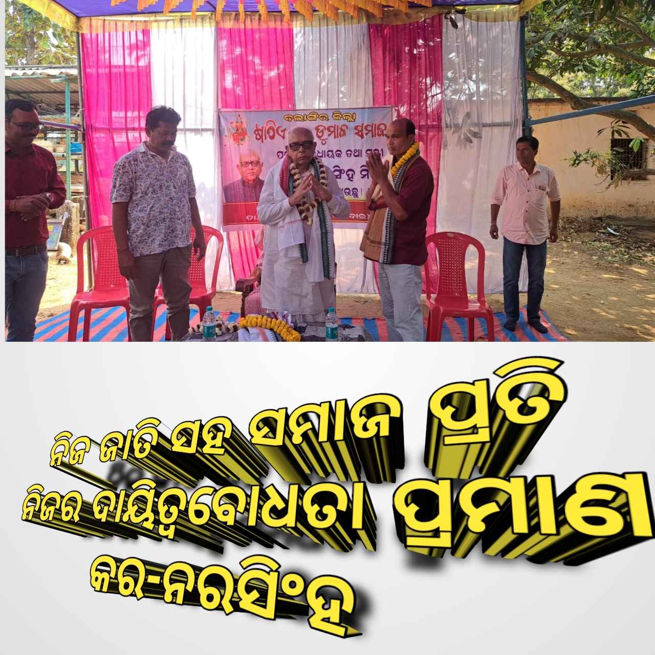 ଦାୟିତ୍ୱବୋଧତା ପ୍ରମାଣିତ ହୋଇଥାଏ । ତେଣୁ ମୁଁ ଆହ୍ୱାନ କରୁଛି ନିଜ ଜାତି ସହ ସମାଜ ପ୍ରତି ମଧ୍ୟ ଉତ୍ତରଦାୟିତ୍ୱ ପ୍ରମାଣ କରନ୍ତୁ ବୋଲି ଆଜି ବଲାଙ୍ଗିର ବ୍ଲକ ସ୍ଥିତ ରାଣୀପାଲି ଆମ୍ବ ବଗିଚାରେ ଅନୁଷ୍ଠିତ ୬୦ଘର ଡୁମାଲ ସମାଜ ର ସାଂଗଠନିକ ବୈଠକରେ ମୁଖ୍ୟ ଅତିଥି ଭାବେ ପୂର୍ବତନ ଆଇନମନ୍ତ୍ରୀ ନରସିଂହ ମିଶ୍ର ଯୋଗ ଦେଇ ଉପସ୍ଥିତ ଲୋକଙ୍କୁ ନିଜ ବକ୍ତବ୍ୟରେ କହିଛନ୍ତି । ଏ ଅବସରରେ ନୂତନ ଭାବେ ନିର୍ବାଚିତ ହୋଇଥିବା ୬୦ଘର ଡୁମାଲ ସମାଜର ସଭାପତି ଶରତ ମହାକୁର, ଯାହାଙ୍କୁ କି ଜାତି ସମାଜ ହିସାବରେ ଜାତିର ପନୁଆ ବୋଲି କୁହାଯାଏ ତାଙ୍କୁ ମୁଖ୍ୟ ଅତିଥି ଶ୍ରୀ ମିଶ୍ର ଉତ୍ତରୀୟ ପ୍ରଦାନ ସହ ସମ୍ବର୍ଦ୍ଧିତ କରିଥିଲେ । ଏ ଅବସରରେ ଶ୍ରୀ ମିଶ୍ର ଆହୁରି ମଧ୍ୟ କହିଥିଲେ ଯେ ଡୁମାଲ ସମାଜ ଏକ ସାମାଜିକ ରାଜନୈତିକ ଓ ଅର୍ଥନୈତିକ ସ୍ତରରେ ଏକ ଆଗୁଆ ଜାତି ସମାଜ । ଏମାନେ କେବଳ ନିଜ ଭିତରେ ନ ରହି ସମାଜରେ ଚାଲିଥିବା ଦୁର୍ନିତି, ବେକାରୀ ସମସ୍ୟା, ମହିଳା ନିର୍ଯ୍ୟାତନା, ଚାଷୀମାନଙ୍କ ଧାନକିଣା ସମସ୍ୟା ଏ ସବୁର ସମାଧାନ ପାଇଁ ମଧ୍ୟ ସ୍ୱର ଉତ୍ତୋରଣ କରନ୍ତି । ଏ ଅବସରରେ ପୂର୍ବତନ ସଭାପତି ଲମ୍ବୋଦର ମହାକୁର ନିଜର ବିଦାୟୀ ଭାଷଣ ଦେଇ ସମସ୍ତଙ୍କୁ ଶୁଭେଚ୍ଛା ଜଣାଇଥିଲେ । ଆଜିର ଏହି କାର୍ଯ୍ୟକ୍ରମରେ ବଲାଙ୍ଗିର ଜିଲ୍ଲାର ବିଭିନ୍ନ କେନ୍ଦ୍ରରୁ ସଭାପତି, ସଂପାଦକ ଏବଂ