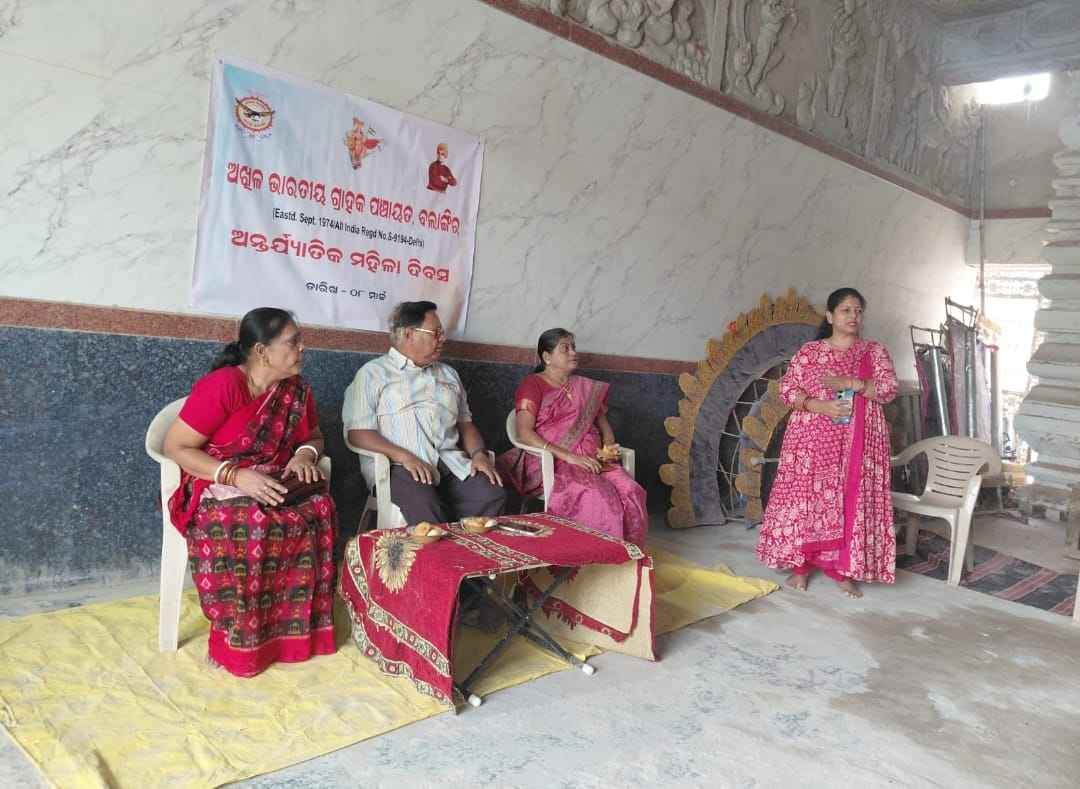 ବଲାଙ୍ଗିର(ପ୍ରେରଣା ଖବର): ଆଜି ଦିନ ୧୦ ଘଣ୍ଟା ସମୟରେ ମାଲ୍ ପଡା ରାମ ସ୍ଵାମୀ ମନ୍ଦିର ଠାରେ ଅଖିଳ ଭାରତୀୟ ଗ୍ରାହକ ପଞ୍ଚାୟତ ବଲାଙ୍ଗିର ଶାଖା ମହିଳା ସମିତି ପକ୍ଷରୁ ସଂଯୋଜକ ନିହାରିକା ମିଶ୍ରଙ୍କ ସଭାପତିତ୍ବରେ ଆନ୍ତର୍ଜାତିକ ମହିଳା ଦିବସ ପାଳନ ହୋଇ ଯାଇଥିଲା. ଗ୍ରାହକ ପଞ୍ଚାୟତ ଓଡିଶା ପଶ୍ଚିମ ପ୍ରାନ୍ତ ସଭାପତି କିଶୋର ମୋହନ ମିଶ୍ର ମୁଖ୍ୟ ଅତିଥି ଭାବେ ଯୋଗ ଦେଇ ଥିଲେ. ପ୍ରଥମେ ପ୍ରଦୀପ ପ୍ରଜ୍ଜ୍ଵଳନ ପୂଜା ଅର୍ଚନା ପରେ ସଂଯୋଜକ ଦିବସ ପାଳନ ଉଦ୍ଦେଶ୍ୟ ସୂଚନା ଦେଇ ସମସ୍ତଙ୍କୁ ସ୍ଵାଗତ କରିଥିଲେ ନିହାରିକା ମିଶ୍ର।
