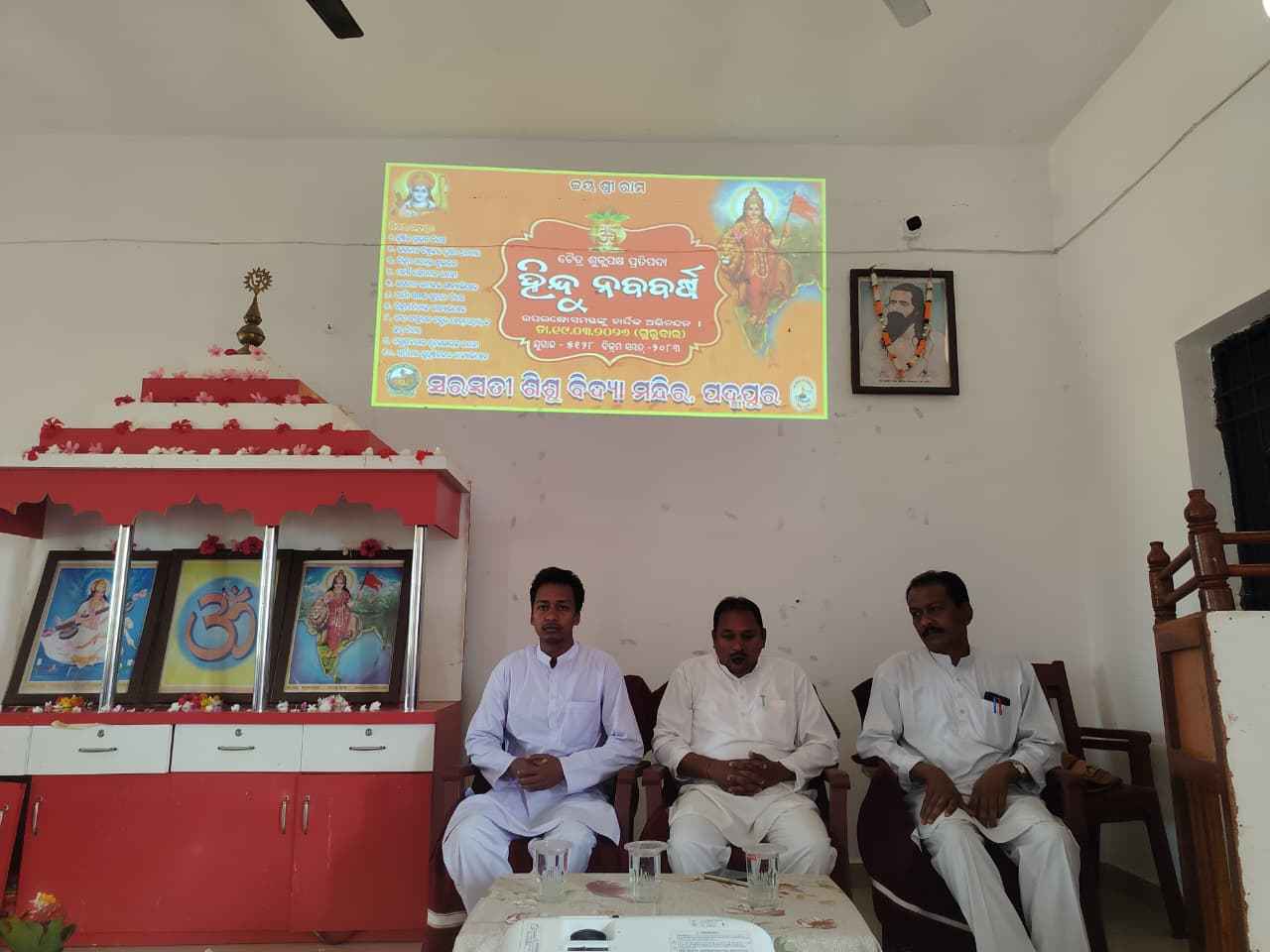 ସରସ୍ଵତୀ ଶିଶୁ ବିଦ୍ୟାମନ୍ଦିର ପଦ୍ମପୁର ରେ ରାଷ୍ଟ୍ରୀୟ ହିନ୍ଦୁ ନବବର୍ଷ ପାଳିତ ହୋଇଯାଇଛି। ଶିଶୁ ମନ୍ଦିର ପରିସରରେ ଦିବା ପର୍ଯ୍ୟାୟ ପ୍ରମୁଖ ମୁଦିରଥ ପଣ୍ଡା କାର୍ଯ୍ୟକ୍ରମ ର ଉଦ୍ଦେଶ୍ୟ କଥନ କରି ସ୍ଵାଗତ ଭାଷଣ ପ୍ରଦାନ କରିଥିଲେ। ଜୀବନାନନ୍ଦ ଶତପଥୀ ଦୀପ ପ୍ରଜ୍ଜ୍ୱଳନ ପୂର୍ବକ ହିନ୍ଦୁ ନବବର୍ଷ ବିଷୟରେ ଆଲୋଚନା କରିଥିଲେ। ସ୍ନିଗ୍ଧା ହାତୀ କାର୍ଯ୍ୟକ୍ରମ ର ସଂଯୋଜନା କରିଥିବା ବେଳେ ଲୋପାମୁଦ୍ରା ପୂଜାରୀ ଧନ୍ୟବାଦ ଅର୍ପଣ କରିଥିଲେ। ସେହିପରି ବିଦ୍ୟା ମନ୍ଦିର ପରିସରରେ ପ୍ରଧାନ ଆଚାର୍ଯ୍ୟ ଶ୍ରୀଯୁକ୍ତ ଚୈତନ୍ୟ ଭୋଇ ଉପସ୍ଥିତ ରହି ଅତିଥି ପରିଚୟ ପ୍ରଦାନ କରିବା ସହିତ ଉଦ୍ଦେଶ୍ୟ କଥନ କହିଥିଲେ ।କାହିଁକି ହିନ୍ଦୁ ନବ ବର୍ଷ ପାଳନ କରାଯାଏ ସେ ବିଷୟରେ ଭାଇ ଭଉଣୀମାନଙ୍କୁ ମାର୍ଗଦର୍ଶନ କରିଥିଲେ । । ସଂଗ୍ରାମ ପଟେଲ ହିନ୍ଦୁ ନବ ବର୍ଷର ମାହାତ୍ମ୍ୟ ବିଷୟରେ ଆଲୋକପାତ କରିଥିଲେ ।ଭଉଣୀ ସହେଲି ସାହୁ ଓ ତନ୍ବି ମୃଣାଳିନୀ ସୁନା ହିନ୍ଦୁ ନବ ବର୍ଷ ଉପରେ ବକ୍ତବ୍ୟ ପ୍ରଦାନ କରିଥିଲେ ।ଏହି କାର୍ଯ୍ୟକ୍ରମକୁ ଭଉଣୀ ସୋନାଲି ସାହୁ ସଂଯୋଜନା କରିଥିବା ବେଳେ ବିଦ୍ୟା ମନ୍ଦିର ପ୍ରମୁଖ ଶ୍ରୀଯୁକ୍ତ ଦେବରାଜ ଡନସନା ଧନ୍ୟବାଦ ଅର୍ପଣ କରିଥିଲେ । ସମସ୍ତ ଭାଇ ଭଉଣୀମାନେ ପରସ୍ପର ଙ୍କୁ ହିନ୍ଦୁ ନବବର୍ଷ ର ଅଭିନନ୍ଦନ ଜଣାଇଥିଲେ । ସମସ୍ତ ଗୁରୁଜୀ ଗୁରୁମାମାନଙ୍କ ସହଯୋଗରେ କାର୍ଯ୍ୟକ୍ରମଟି ସଫଳ ହୋଇଥିଲା ।