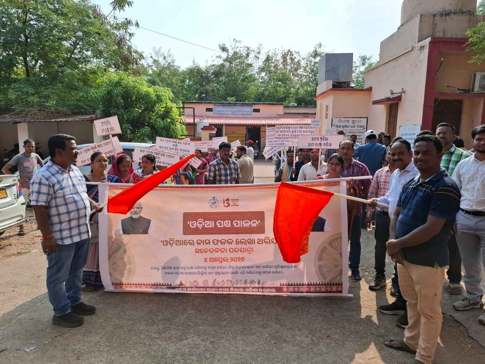 ରାଜେନ୍ଦ୍ର କୁମାର ମାଝି ପ୍ରମୁଖ ଉପସ୍ଥିତ ଥିଲେ । ପଦଯାତ୍ରା ସହରର ପ୍ରମୁଖ ରାସ୍ତା ଓ ଛକ ଦେଇ ଆୟୋଜିତ ହୋଇ, ଜନସାଧାରଣ ଓ ବ୍ୟବସାୟୀଙ୍କୁ ନାମଫଳକ ଓଡ଼ିଆ ଭାଷାରେ ସ୍ପଷ୍ଟ ଓ ନିର୍ଭୁଲ ଭାବରେ ଲେଖିବା ପାଇଁ ସଚେତନ କରାଯାଇଥିଲା। ଏହି ଅଭିଯାନରେ ସହକାରୀ ଶ୍ରମ ଅଧିକାରୀ କେଶବ ବେହେରା, ରଜନୀକାନ୍ତ ଛତ୍ରିଆ, ବିଭୁଦତ୍ତ ମଲ୍ଲିକ, ସୁଶ୍ରୀ ଦୀପା ନେଟି, ପ୍ରେମରଞ୍ଜନ ରଣା, ଅଭୟ କୁମାର ମହାକୁର, ରାଜୀବ କୁମାର ମହାନ୍ତି, ଗ୍ରାମୀଣ ଶ୍ରମ ନିରୀକ୍ଷକ ଅଶୋକ କୁମାର ଡୁଙ୍ଗ ଡୁଙ୍ଗ ସହିତ ଶ୍ରମ ବିଭାଗର କର୍ମଚାରୀମାନେ ଅଂଶଗ୍ରହଣ କରିଥିଲେ।