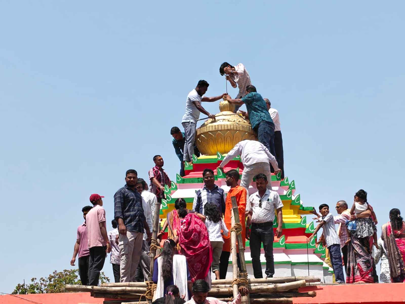 ସକାଳୁ ମନ୍ଦିର ପ୍ରତିଷ୍ଠା, କମ୍ବ ଭରଣା ଏବଂ ସନ୍ଧ୍ୟାରେ ପୂର୍ଣାହୂତି ଅନୁଷ୍ଠିତ ହୋଇଥିଲା।
