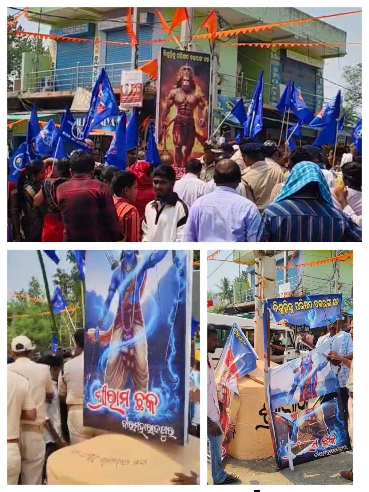 ସୁବର୍ଣ୍ଣପୁର, ( ମନୋରଞ୍ଜନ ତ୍ରିପାଠୀ ) ସୁବର୍ଣ୍ଣପୁର ଜିଲ୍ଲାରେ ଧୁମଧାମ ରେ ବାବା ସାହେବ ଭୀମ ରାଓ ଆମ୍ବେଦକର ଙ୍କ ଜୟନ୍ତୀ ସହ ହନୁମାନ ଜୟନ୍ତୀ ପାଳନ ହୋଇଥିଲା। କିନ୍ତୁ ଜିଳ୍ଲାର ବୀରମହାରାଜପୁର ଠାରେ ଏକ ଅଭାବନୀୟ ଘଟଣା ଘଟିଛି। ପ୍ରଭୂ ଶ୍ରୀ ରାମ ଏବଂ ହନୁମାନଙ୍କ ଫଟୋ ଚିତ୍ରକୁ ଭୀମ ଆର୍ମି କର୍ମକର୍ତ୍ତା ମାନେ ଚିରା ଫଡା କରିବା ସହ ଦଳି ଚକଟି ଦେଇଥିବା ଥାନାରେ ଅଭିଯୋଗ ହୋଇଛି । ଯାହାକି ହିନ୍ଦୁ ସନାତନୀ ମାନଙ୍କୁ ବହୁତ୍ ଆଘାତ ଦେଇଛି । ସୂଚନା ଯୋଗ୍ୟ ଯେ ଗତକାଲି ବୀରମହାରାଜପୁର ଆମ୍ବେଦକର୍ ଭବନ ଠାରୁ ବୀରମହାରାଜପୁର ଚାରିଛକ ଅଭିମୁଖେ ବାବା ସାହେବ ଙ୍କ ରାଲି ବାହାରିଥିଲା ବେଳେ ବିଧାୟକ ଈଂ ରଘୁନାଥ ଜଗଦଲା ମଧ୍ୟ ସାମିଲ ଥିଲେ। କିନ୍ତୁ ପରେ ଚାରିଛକ ଠାରେ ସ୍ଥାନୀୟ ବଜରଙ୍ଗ ଦଳ ପକ୍ଷରୁ ଲାଗିଥିବା ପ୍ରଭୂ ଶ୍ରୀ ରାମ ଏବଂ ହନୁମାନ ଙ୍କ ଫଟୋ କୁ ଜୟ ଭୀମ ନାରା ଦେଇ କିଛି ଦୁର୍ବୃତ୍ତ ଚିରି ଦେବା ସହ ଦଳା ଚକଟା କରିଥିଲେ। ଏ ନେଇ ପରେ ବଜରଙ୍ଗ ଦଳ ପକ୍ଷରୁ ସ୍ଥାନୀୟ ଥାନାରେ ଏକ ଏତଲା ଦିଆଯାଇଥିବା ଜଣାପଡିଛି ।ବୀରମହାରାଜପୁର ବିଧାୟକ ଆଉ ପୋଲିସ ପ୍ରଶାସନ ଥାଇକି ମଧ୍ୟ୍ୟ ଏହି ଘଟଣା ଘଟିଥିବା ଦୁର୍ଭାଗ୍ୟ ର ବିଷୟ ବୋଲି ବଜରଙ୍ଗ ଦଳ ଅଭିଯୋଗ କରିଛି । ସେପଟେ ପରେ ବଜରଙ୍ଗ ଦଳ ପକ୍ଷରୁ ସ୍ଥାନୀୟ ବିଜେପି ବିଧାୟକ ଈଂ ରଘୁନାଥ ଜଗଦଲା ଙ୍କ କୁଶ ପୁତ୍ତଳିକା ଦାହ କରାଯାଇଛି । ଏ ନେଇ ଜିଲ୍ଲାରେ ହଇଚଇ ସୃଷ୍ଟି ହୋଇଥିବା ବେଳେ ଆଗକୁ ପୋଲିସ ପକ୍ଷରୁ କଣ କାର୍ଯ୍ୟନୁଷ୍ଠାନ ନିଆଯାଉଛି ଦେଖିବାକୁ ବାକି ରହିଛି ।