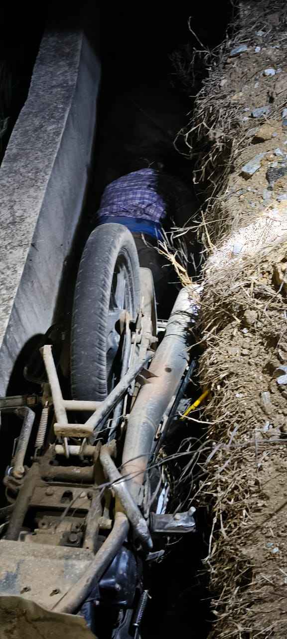 ଡୁଙ୍ଗୁରିପାଲି(ଅରବିନ୍ଦ ମିଶ୍ର)-ଡୁଙ୍ଗୁରିପାଲି ବ୍ଲକ ରାମପୁର ଥାନା ବାଙ୍କୀପାଲି ଛକ ରେ କାମ ସାରି ଘର କୁ ଫେରୁଥିବା ବେଳେ ଅଜଣା ଗାଡ଼ି ଧକ୍କା ରେ ଚାଲିଗଲା ବାଇକ ଚାଳକ ଙ୍କ ଜୀବନ। ସୂଚନା ମୁତାବକ ଗତକାଲି ବିଳମ୍ବିତ ରାତିରେ ରାମପୁର ପଟୁ ଗୁଳିହାପଦର ଗ୍ରାମର ଦେବେନ୍ଦ୍ର ସାହୁ ଘରକୁ ଆସୁଥିବା ବେଳେ ବାଙ୍କୀପାଲି ନିକଟରେ ଏକ ଅଜଣା ଗାଡ଼ି ତାଙ୍କୁ ଧକ୍କା ଦେଇ ଫେରlର ହୋଇଯାଇଛି l ଫଳରେ ବାଇକ୍ ସହ ବାଇକ ଆରୋହୀ ଡ୍ରେନ୍ ରେ ପଡ଼ି ଯାଇଥିଲ। ଲୋକେ ଖବର ପାଇ ରାମପୁର ଥାନାକୁ ଖବର କରିଥିଲେ ତାଙ୍କୁ ଉଦ୍ଧାର କରି ଡୁଙ୍ଗୁରିପାଲି ଗୋଷ୍ଠୀ ସ୍ୱାସ୍ଥ୍ୟ କେନ୍ଦ୍ର କୁ ଆଣିଥିଲେ ହେଲେ ସେଠାରେ ଡ଼ାକ୍ତର ତାଙ୍କୁ ମୃତ ଘୋଷାଣ କରିଛନ୍ତି l ରାମପୁର ପୋଲିସ ଦୁର୍ଘଟଣା ଗ୍ରସ୍ତ ବାଇକକୁ ଜବତ କରି ତଦନ୍ତ କରୁଛି l