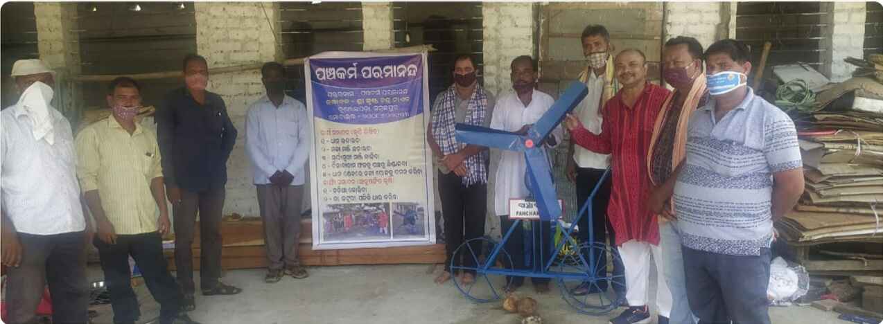 ସମ୍ବଲପୁର(ସଞ୍ଜିବ ପାଣିଗ୍ରାହୀ ଙ୍କ ରିପୋର୍ଟ): ମୁଖ୍ୟମନ୍ତ୍ରୀ ନବୀନ ପଟ୍ଟନାୟକ ଙ୍କ ଦ୍ୱାରା ରାଜ୍ୟ ସ୍ତରୀୟ ଅବିନବ କୃଷି ଯନ୍ତ୍ରପାତି ସମ୍ମାନ ପ୍ରାପ୍ତ ଉଦ୍ଭାବକ କୃଷ୍ଣ ଚନ୍ଦ୍ର ନାଏକ ଙ୍କ ନିର୍ମିତ ପଞ୍ଚକର୍ମ ପରମାନନ୍ଦ କୃଷି ଯନ୍ତ ର ଆଜି ଶୁଭ ଉନ୍ମୋଚନ ହୋଇଛି l ଜ଼ିଲ୍ଲାର ଧନକଉଡା ବ୍ଲକ କନଖିଣ୍ଡା, ପିପଲ ପଡ଼ା ର ଚାଷୀ ବୀରେନ୍ଦ୍ର ବଢ଼ାଇ ଙ୍କ ଖଳା ରେ ଅନୁଷ୍ଠିତ ଏହି ଉନ୍ମୋଚନ କାର୍ଯ୍ୟକ୍ରମ ରେ କୃଷ୍ଣ ଚନ୍ଦ୍ର ନାଏକ ଙ୍କ ସହିତ ବିଜୁ ଯୁବ ଜନତା ଦଳ ରାଜ୍ୟ ସାଧାରଣ ସମ୍ପାଦକ ହୀରାଲାଲ ବେହେରା, କୃଷକ ସଂଗଠନ ର ଦେବେନ୍ଦ୍ର ପ୍ରଧାନ, ଅଗ୍ରଣୀ ଚାଷୀ ବୀରେନ୍ଦ୍ର ବଢ଼ାଇ, ସାହେବ ସାହୁ, ଜୟଲାଲ ଥାପା, ରାଜକୁମାର ସାହୁ, କୃଷକ ସାଥୀ ନରେଶ ନାଏକ, ଗକୁଲା ନାଏକ, ପ୍ରଦୀପ ପଟେଲ, ବିଜେଡି ଧନକଉଡା ବ୍ଲକ ସଭାପତି ରଜନୀ ସାହୁ ତଥା ଅନେକ ଚାଷୀ ଉପସ୍ଥିତ ଥିଲେ l ଏହି ଯନ୍ତ୍ର ଦ୍ଵାରା ଚାଷ ଜମିରୁ ନଳୀ ପୋକ ନିୟନ୍ତ୍ରଣ, ଧାନ ଉଡେଇବା, ମକା ରୁ ମଞ୍ଜି ବାହାର କରିବା, ଗଛରୁ ଚିନାବାଦାମ କାଢିବା ସହ ନଡ଼ିଆ କୋରିବା, ଛୁରୀ ଧାର କରିବା ଆଦି କାର୍ଯ୍ୟ କରାଯାଇ ପାରିବ l ଆଗାମୀ ଦିନରେ ଏହି ଯନ୍ତ ର ଓଡିଶା ରେ ବହୁଳ ପ୍ରସାର ହୋଇ କମ ଖର୍ଚ୍ଚ ରେ କୃଷକ ମାନେ ସାହାଯ୍ୟ ପାଇ ପାରିବେ l ସରକାର ଏହି ପଞ୍ଚକର୍ମ ପରମାନନ୍ଦ ଯନ୍ତ୍ର ଚାଷୀ ଭାଇ ମାନଙ୍କୁ ରିହାତି ମୂଲ୍ୟ ରେ ଯୋଗାଇ ଦେଲେ ଅନେକ ଚାଷୀ ଉପକୃତ ହୋଇପାରିବେ ବୋଲି ଆଶା କରାଯାଉଛି l