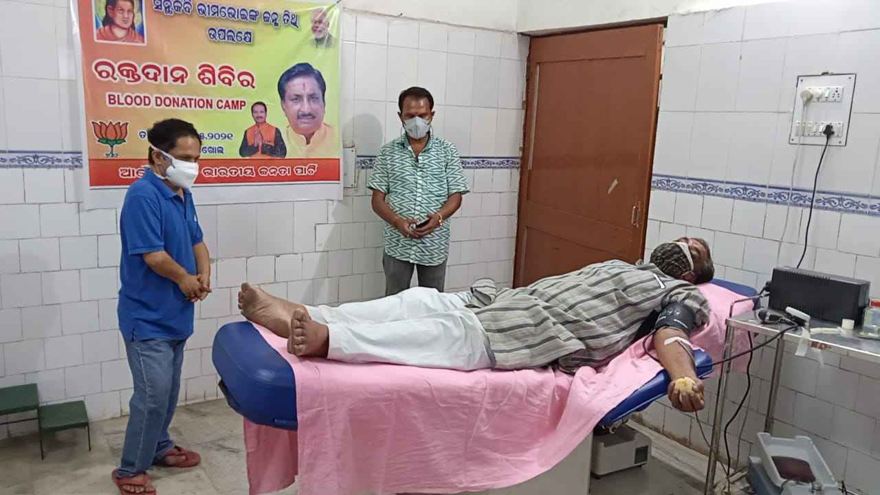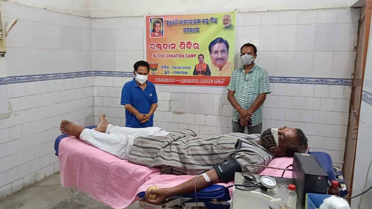 ରେଢ଼ାଖୋଲ (ଅନିଲ କୁମାର ପୃଷ୍ଟି) : ସମ୍ବଲପୁର ଜିଲ୍ଲା ରେଢାଖୋଲ ବେଜେପି ପକ୍ଷରୁ ବୁଧବାର ଭୀମଭୋଇଙ୍କ ଜନ୍ମ ଜୟନ୍ତୀ ଅବସରରେ ଭୀମଭୋଇ ଛକରେ ଥିବା ପ୍ରତିମୂର୍ତ୍ତି ରେ ମାଲ୍ୟାର୍ପଣ ପରେ ରେଢ଼ାଖୋଲ ରକ୍ତ ଭଣ୍ଡାରରେ କର୍ମୀ ମାନେ ୧୦ ୟୁନିଟ ରକ୍ତଦାନ କରିଥିଲେ । ଏହି ରକ୍ତଦାନ ଶିବିରରେ ମୁଖ୍ୟ ଅତିଥି ଭାବେ ରେଢ଼ାଖୋଲ ଉପଖଣ୍ଡ ଚିକିତ୍ସାଳୟର ଅଧ୍ୟକ୍ଷ ଡ଼ଃ ରାମକୃଷ୍ଣ ପତି ଯୋଗଦେଇ ରକ୍ତଦାତାଙ୍କୁ ଉତ୍ସାହିତ କରିଥିଲେ । ବିଜେପି ରାଜ୍ୟ ପ୍ରବକ୍ତା ଗୋବିନ୍ଦ ନାରାୟଣ ଅଗ୍ରୱାଲ , ରେଢ଼ାଖୋଲ ବ୍ଳକ ସାଂସଦ ପ୍ରତିନିଧି ଶିବରାମ ସାହୁ , ପୂର୍ବତନ ନଗର ଯୁବମୋର୍ଚ୍ଚା ସଭାପତି ଅନିଲ ପୃଷ୍ଟି , ମୁକେଶ ପଟ୍ଟନାୟକ , ପ୍ରଦୀପ ବିଶ୍ବାଳ , ପ୍ରକାଶ ମୁଖୀ , ଦିଲିପ ଲାଉରିଆ ପ୍ରମୁଖ ରକ୍ତଦାନ କରିଥିବା ବେଳେ ବ୍ଳଡ ବ୍ୟାଙ୍କ ଟେକନିସିଆନ ଇଁନ୍ଦ୍ରମଣି ବେହେରା , ଜାମିନୀ ସାହୁ ସହଯୋଗ କରିଥିଲେ