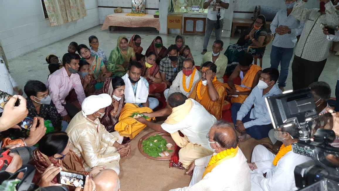 ଅନ୍ୱେଷଣ ପାଇଁ ବରପିତା ରାମଚରଣ ମିଶ୍ର, ସପ୍ତର୍ଷି ଏବଂ ପଡ଼ାର ମୁରବୀ ମାନଙ୍କ ସହିତ ଶଙ୍ଖ ଧ୍ୱନି ମଧ୍ୟରେ ନିରାଡମ୍ବର ଭାବରେ କୋଭିଡ ନିୟମକୁ କଡାକଡି ଭାବରେ ପାଳନ କରି ମନ୍ଦିରରୁ ବାହାରିଥିଲେ l