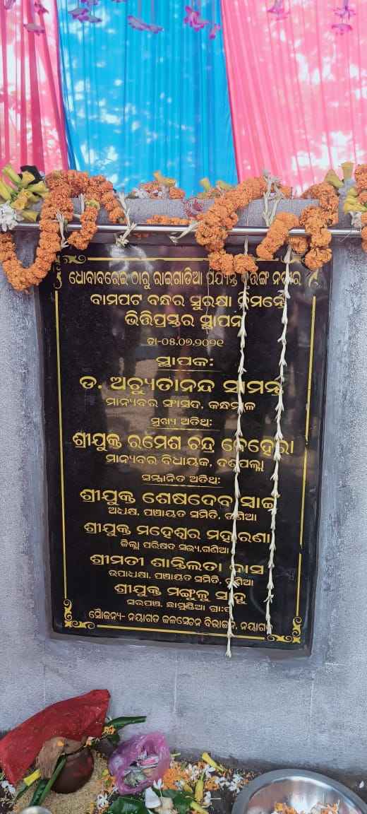 ନୟାଗଡ, (ପ୍ରଦୀପ କୁମାର ପଣ୍ଡା): ନୟାଗଡ଼ ଜିଲା ଗଣିଆ ବ୍ଲକ ଛାମୁଣ୍ଡିଆ ଗ୍ରାମପଞ୍ଚାୟତରେ ସୋମବାର ଦିନ ବିଭିନ୍ନ ଉନ୍ନୟନମୂଳକ ପ୍ରକଳ୍ପର ଶିଳାନ୍ୟାସ କରାଯାଇଛି। ଏପରିକି ବର୍ଷା ଦିନେ ଉକ୍ତ ଅଞ୍ଚଳ ରେ ଜନସାଧାରଣ ବହୁତ ଅସୁବିଧା ର ସମ୍ମୁଖୀନ ହେଉଥିବାରୁ ନଦୀ ବନ୍ଧ ଉପରେ ବିଶେଷ ଗୁରୁତ୍ୱ ଦିଆଯାଇଛି | ଏହି କାର୍ଯ୍ୟକ୍ରମରେ ଦଶପଲ୍ଲା ବିଧାୟକ ତଥା ନୟାଗଡ଼ ବିଜେଡି ସଭାପତି ଶ୍ରୀଯୁକ୍ତ ରମେଶ ଚନ୍ଦ୍ର ବେହେରା