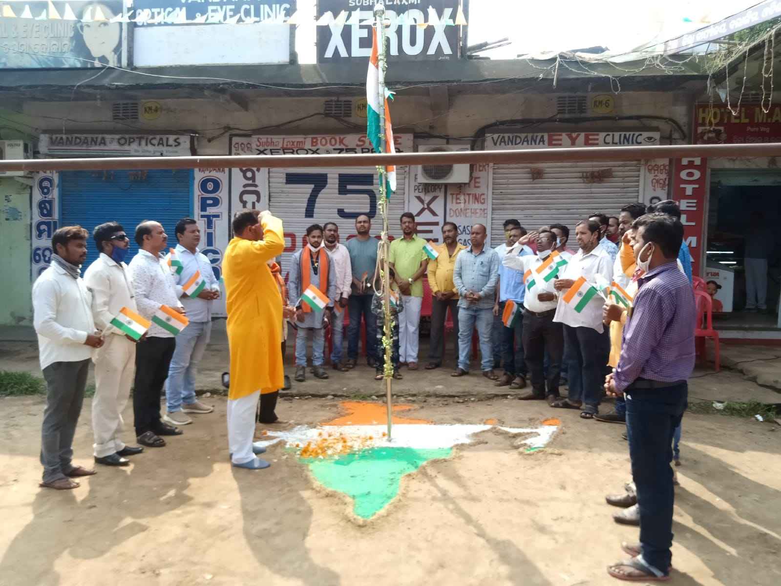 ବଲାଙ୍ଗୀର (ସନ୍ତୋଷ କୁମାର ଠାକୁର) : ଆଜି କେଶରୀୟା ହିନ୍ଦୁ ବାହିନୀ ବଲାଙ୍ଗୀର ଜିଲ୍ଲା ତରଫରୁ ଜିଲ୍ଲା କାର୍ଯ୍ୟାଳୟ ଠାରେ ୭୫ ତମ ସ୍ୱାଧୀନତା ଦିବସ ପାଳନ କରାଯାଇଛି | ଏହି ସ୍ୱାଧୀନତା ଦିବସ ପାଳନ ଅବସରରେ ଜିଲ୍ଲାର ଜିଲ୍ଲା ସଭାପତି ପ୍ରଦୀପ କୁମାର ତ୍ରିପାଠୀ ପତାକା ଉତ୍ତୋଳନ କରିଥିବା ବେଳେ ଅନ୍ୟ ମାନଙ୍କ ମଧ୍ୟରେ ଜିଲ୍ଲାର ବରିଷ୍ଠ ଉପାଧ୍ୟକ୍ଷ ସଙ୍କର୍ଷଣ ଆଚାର୍ଯ୍ୟ,ଯୁବ ମୋର୍ଚ୍ଚା ସଭାପତି ଆଲୋକ ନାଥ ପଣ୍ଡା,ଜିଲ୍ଲା ସଚିବ ହରେକୃଷ୍ଣ ବେହେରା,ଚକ୍ରଧର ପାଣି,ନେପାକ ସା, ରବୀନ୍ଦ୍ର ନାଏକ,ମନୋଜ ନାଏକ,ବୁଲୁ ପରଡିଆ,ପ୍ରଶାନ୍ତ ମିଶ୍ର ଏବଂ ଜିଲ୍ଲା ଓ ନଗରର ଅନ୍ୟାନ୍ୟ ପ୍ରମୁଖ କାର୍ଯ୍ୟକର୍ତ୍ତା ଯୋଗଦାନ କରିଥିଲେ | ଜିଲ୍ଲାର ସଭାପତି ପ୍ରଦୀପ ତ୍ରିପାଠୀ ପତାକା ଉତ୍ତୋଳନ କରି ସ୍ୱାଧୀନତା ଦିବସ ପାଳନର ବିଶେଷତ୍ୱ ବର୍ଣ୍ଣନା କରିଥିଲେ ଏବଂ ପରେ ମିଷ୍ଠାନ୍ନ ବଣ୍ଟନ କାର୍ଯ୍ୟକ୍ରମ କରାଯାଇଥିଲା | କେଶରୀୟା ହିନ୍ଦୁ ବାହିନୀ ସର୍ବଦା ଦେଶ ଓ ହିନ୍ଦୁ ଜାତି ଓ ଗୋ ସୁରକ୍ଷା ପାଇଁ ଲଢେଇ ଜାରି ରଖିବ ବୋଲି ନିଜ ବକ୍ତବ୍ୟରେ ପ୍ରଦୀପ ତ୍ରିପାଠୀ କହିଥିଲେ |