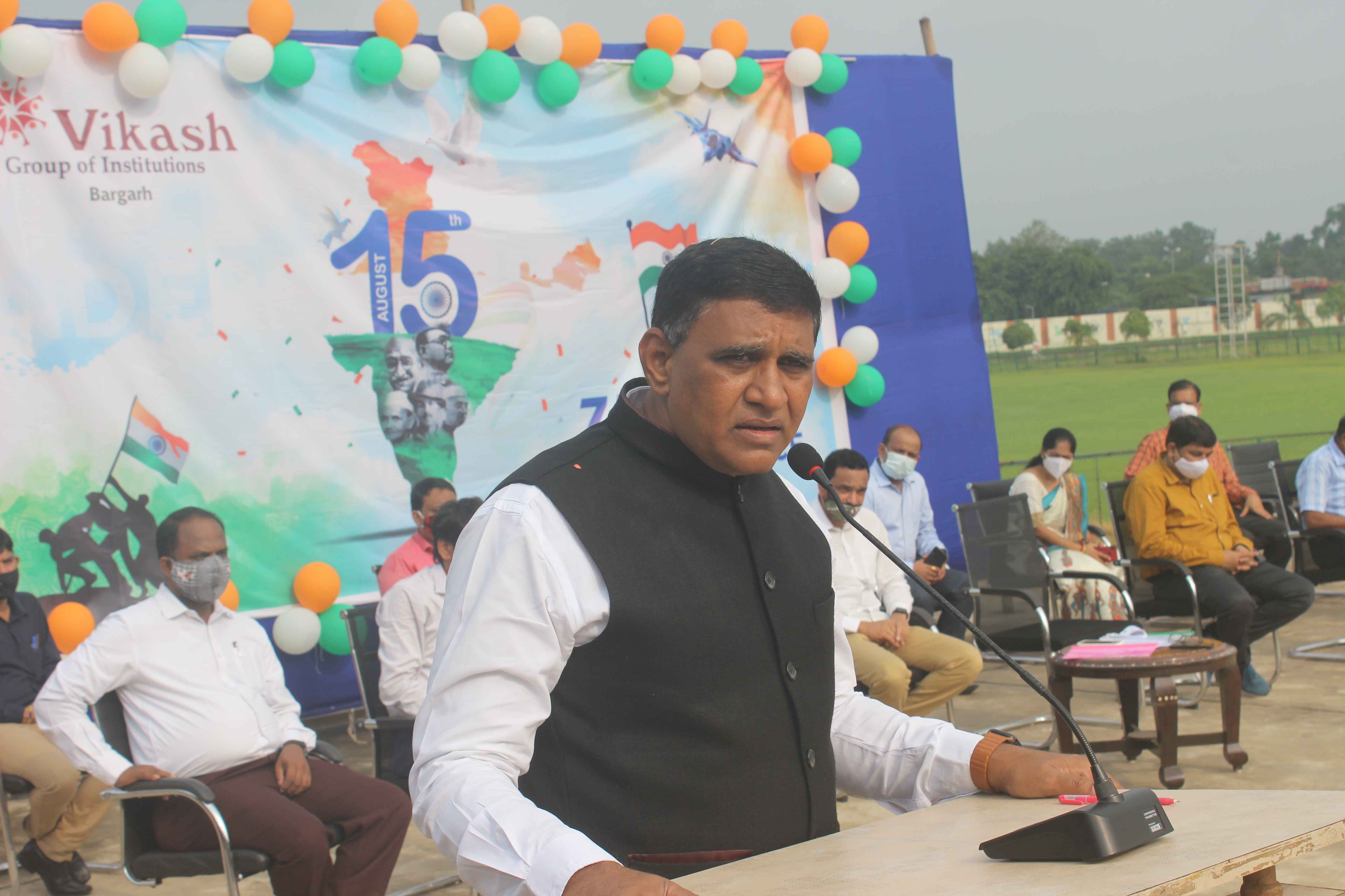 ଆଜି ସରକାରଙ୍କ ଗାଇଡ ଲାଇନ ଅନୁଯାୟୀ ବିକାଶ ଆବାସିକ ବିଦ୍ୟାଳୟ ବରଗଡ଼ରେ ୭୫ ତମ ସ୍ଵାଧୀନତା ଦିବସ ପାଳିତ ହୋଇଯାଇଛି । ଏହି ସ୍ଵତନ୍ତ୍ରତା ଉତ୍ସବରେ ବିକାଶ ଗ୍ରୁପ ଓଫ ଇନଷ୍ଟିଚ୍ୟୁସନର ଚେୟାରମ୍ୟାନ ଶ୍ରୀ ଡି. ମୁରଳୀ କ୍ରୀଷ୍ଣା ପତାକା ଉତ୍ତୋଳନ କରିଥିଲେ । ଏହି ଅବସରରେ ବିକାଶ ଗ୍ରୁପ ଓଫ ଇନଷ୍ଟିଚ୍ୟୁସନର ଡାଇରେକ୍ଟର ଡ. ସମରେନ୍ଦ୍ର ନାଥ ପଣ୍ଡା ସ୍ଵାଗତ ଭାଷଣ ଦେବା ସହିତ ସମୃଦ୍ଧ ଭାରତ ଗଠନରେ ପ୍ରତ୍ୟେକ ଛାତ୍ରଛାତ୍ରୀଙ୍କ ଯୋଗଦାନ ମହତ୍ଵ ପୂର୍ଣ ଅଟେ ବୋଲି ମତବ୍ୟକ୍ତ କରିଥିଲେ । ମୁଖ୍ୟ ଅତିଥି ବିକାଶ ଗ୍ରୁପ ଓଫ ଇନଷ୍ଟିଚ୍ୟୁସନର ଚେୟାରମ୍ୟାନ ଶ୍ରୀ ଡି. ମୁରଳୀ କ୍ରୀଷ୍ଣା ନିଜ ଅଭିଭାଷଣରେ ଦେଢ଼ ବର୍ଷରୁ ଅଧିକ କୋଭିଡ୍ ମହାମାରୀର କରାଳ ଛାୟା ମଧ୍ୟରେ ଛାତ୍ର ଓ ଶିକ୍ଷକ ମାନଙ୍କର ଶିକ୍ଷା ପ୍ରତି ଉତ୍ସର୍ଗ ଭାବନା ଉପରେ ଆଲୋକପାତ କରିଥିଲେ ତଥା ବିଦ୍ୟାଳୟର ବିଭିନ୍ନ କ୍ଷେତ୍ରରେ ବୋର୍ଡ ପରୀକ୍ଷାରେ
