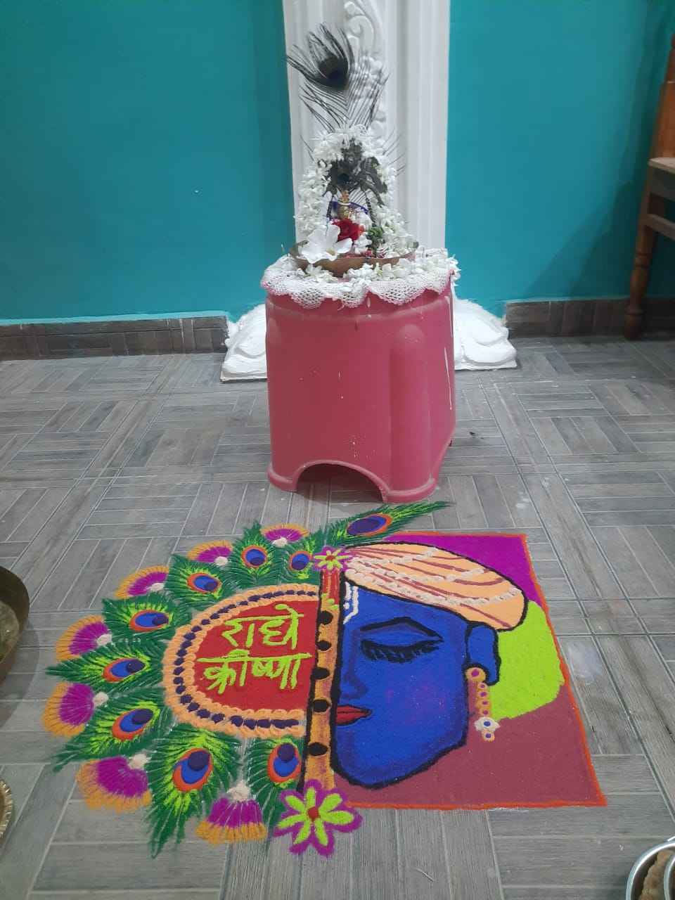 ବଲାଙ୍ଗୀର (ପ୍ରେରଣା ଖବର) :- ଆଜି ଜନ୍ମାଷ୍ଟମୀ । ମନ୍ଦିର ,ଅନୁଷ୍ଠାନ ଏବଂ ଘର ମାନଙ୍କୁ ଶ୍ରୀକୃଷ୍ଣ ଜନ୍ମାଷ୍ଟମୀ ଶୃଙ୍ଖଳା ର ସହ ପାଳିତ ହୋଇଯାଇଛି । ରାଧାରାଣୀ ପଡ଼ା ଠାରେ ଏନ୍ ଅନ୍ୱେଷା ନାମକ ଏକ ଝିଅ କୃଷ୍ଣ ଙ୍କ ଫଟୋ ରଙ୍ଗୋଳି ରେ ଅତି ସୁନ୍ଦର ଭାବରେ ଆଙ୍କିଛନ୍ତି । ରଙ୍ଗୋଳୀ ଦେଖି ଅନେକ ଖୁସି ଜାହିର କରିଥିଲେ ।ଶ୍ରୀକୃଷ୍ଣ ବଂଶୀ ଏବଂ ମୟୂର ଚନ୍ଦ୍ରିକାର ସମାହାରରେ ରଙ୍ଗୋଲିଁ ରେ ବିଭିନ୍ନ ରଙ୍ଗ ଦେଇ ସୁନ୍ଦର