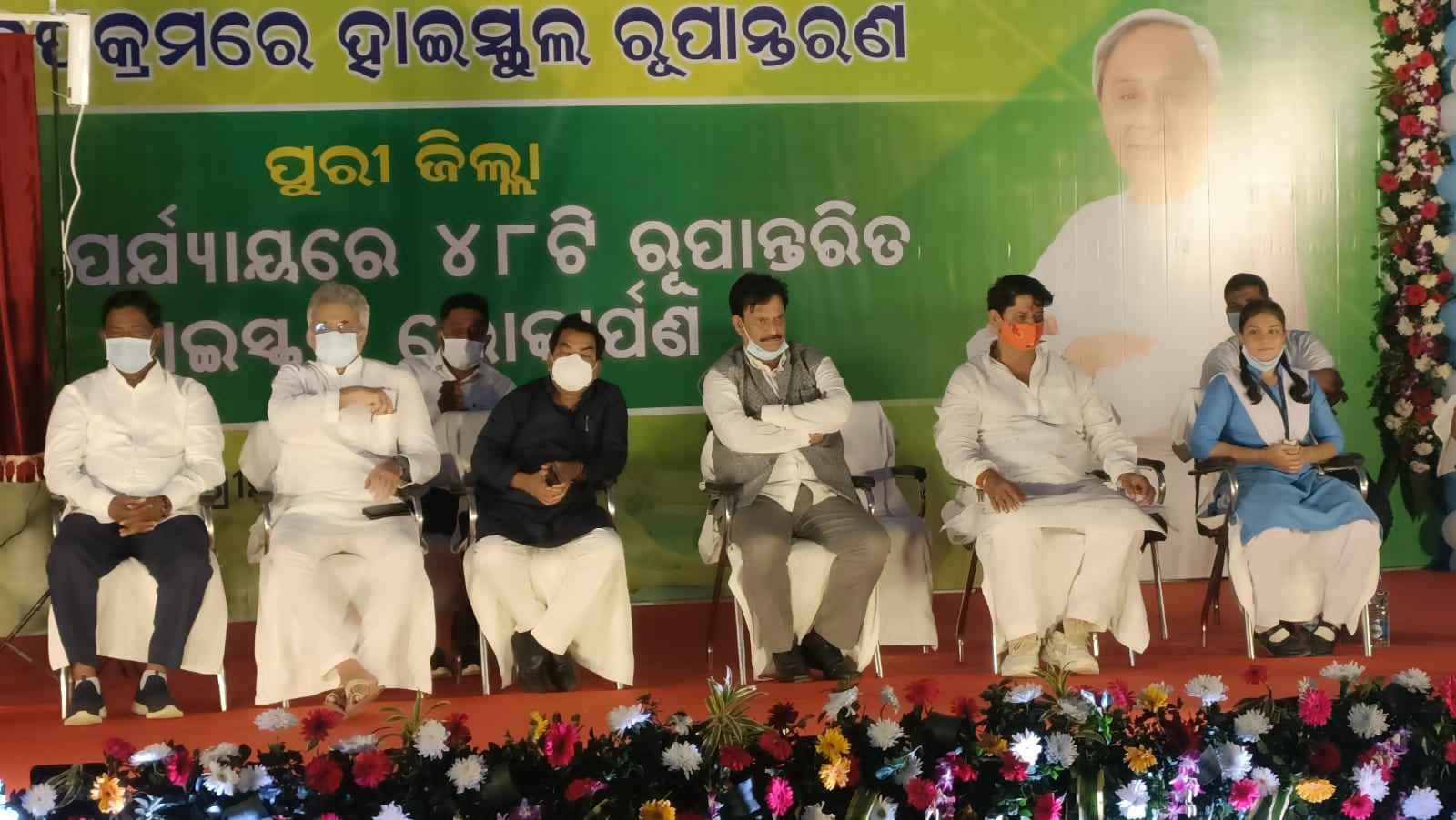 ଦଳାଇ, ପୁରୀ ସାଂସଦ ଶ୍ରୀ ପିନାକୀ ମିଶ୍ର, ସତ୍ୟବାଦୀ ବିଧାୟକ ଶ୍ରୀ ଉମାକାନ୍ତ ସାମନ୍ତରାୟ,ପୁରୀ ବିଧାୟକ ଶ୍ରୀ ଜୟନ୍ତ ଷଡଙ୍ଗୀ, ପିପିଲି ବିଧାୟକ ଶ୍ରୀ ରୁଦ୍ରପ୍ରତାପ ମହାରଥି ,ଜିଲ୍ଲାପାଳ ଶ୍ରୀ ସମର୍ଥ ବର୍ମା ପ୍ରମୁଖ ଉପସ୍ଥିତ ରହି ମାନ୍ୟବର ମୁଖ୍ୟମନ୍ତୀ ଜିଲ୍ଲାପାଇଁ ପ୍ରଥମ ପର୍ଯ୍ୟାୟରେ ୪୮ ଟି ସ୍କୁଲର ରୂପାନ୍ତରଣ କରିଥିବାରୁ ତାଙ୍କୁ କୃତଜ୍ଞତା ଓ ଧନ୍ୟବାଦ ଜ୍ଞାପନ କରିଥିଲେ । ସରକାରୀ ଉଚ୍ଚ ବିଦ୍ୟାଳୟର ଦଶମ ଶ୍ରେଣୀ ଛାତ୍ରୀ ସୁଶ୍ରୀ ଅପର୍ଣ୍ଣା ପଣ୍ତା ମୁଖ୍ୟମନ୍ତ୍ରୀଙ୍କ ସହ କଥାବାର୍ତ୍ତା କରି ବିଦ୍ୟାଳୟ ସହ ନିଜର ଅନୁଭୂତି ସଂପର୍କରେ କହିଥିଲେ ।